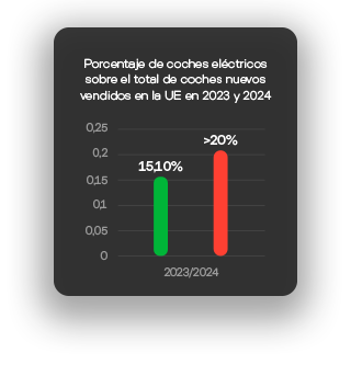- En 2024, se vendieron más de 17 millones de vehículos eléctricos (VE) en todo el mundo, lo que supone un aumento de más del 25 % respecto al año anterior.1