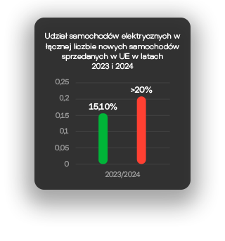 - W 2024 roku na całym świecie sprzedano ponad 17 milionów pojazdów elektrycznych (EV), co stanowi wzrost o ponad 25% w porównaniu z poprzednim rokiem.1